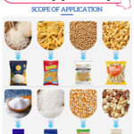 This equipment is suitable for packaging coffee beans, candies, nuts, oats, plastic particles and other granules.