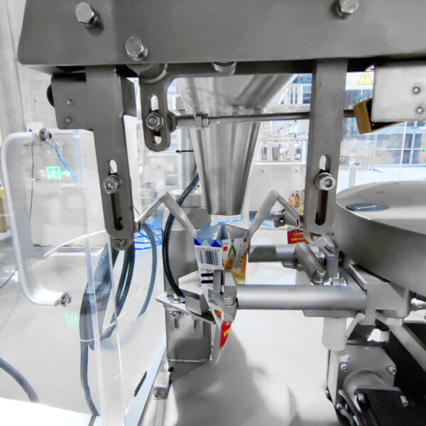 The rotary bag-feeding packaging machine has a high degree of automation and high production efficiency. It is an ideal packaging solution for granular, liquid and powder materials.