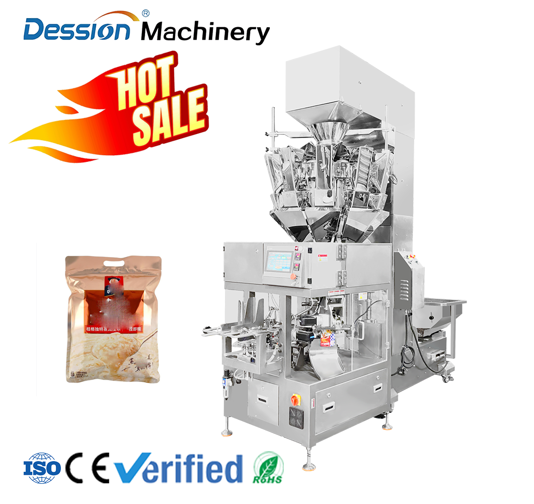The rotary pre-made bag packaging machine is a highly automated and efficient packaging equipment designed for pre-made bags. It is widely used in various industries such as food, daily chemicals, pharmaceuticals, and chemicals, and is suitable for packaging products of all types, including granules, powders, liquids, pastes, and blocks.