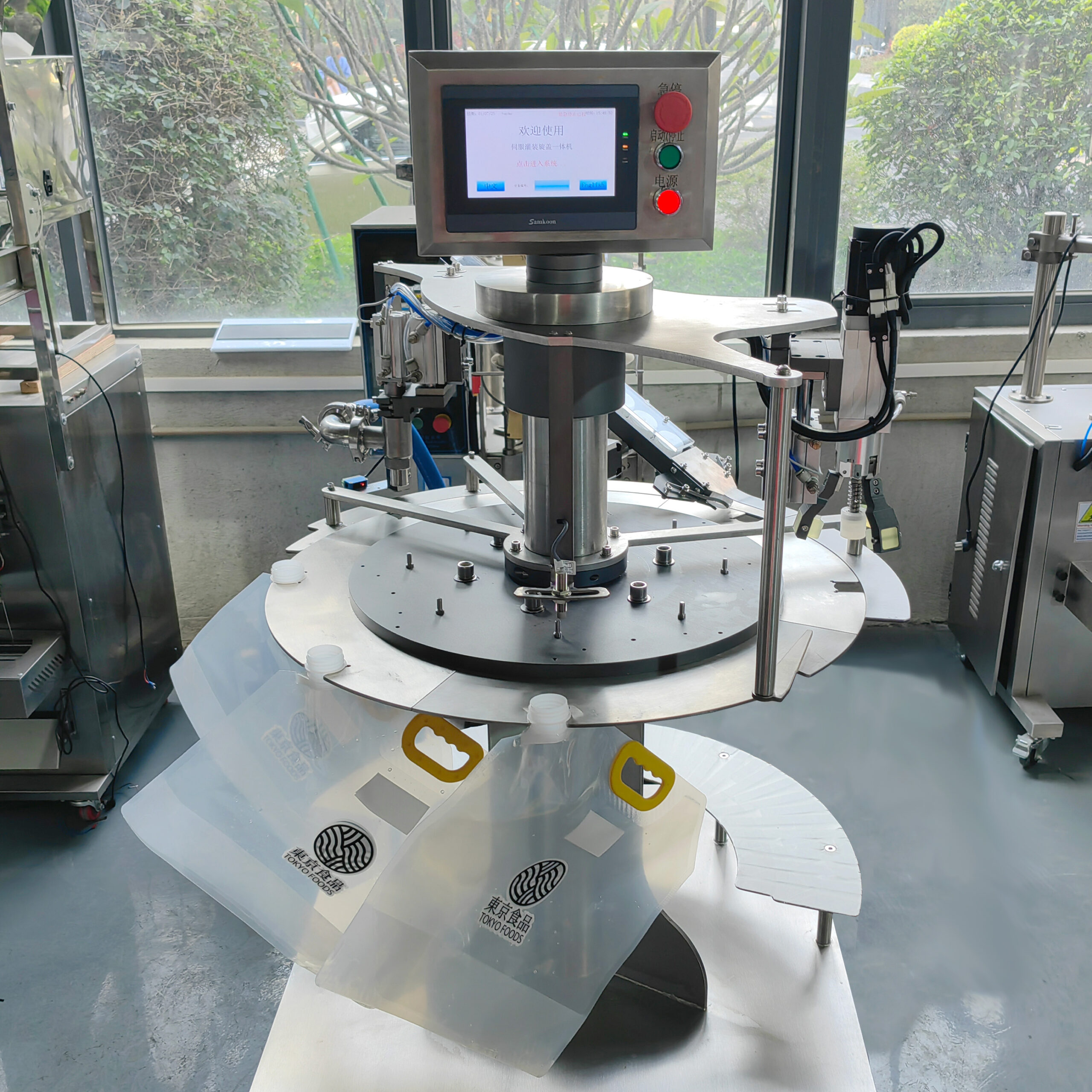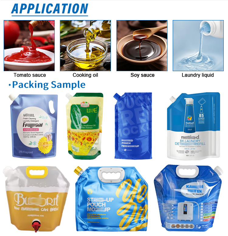 The spout bag filling machine is an automated packaging machine specifically designed for automatic quantitative filling of liquids, pastes, and semi-fluid materials, and sealing the spout bag. It is widely used in the food, beverage, daily chemical, and pharmaceutical industries, and is suitable for packaging a variety of products, including fruit juice drinks, dairy products, sauces, detergents, cosmetics, and lubricants.